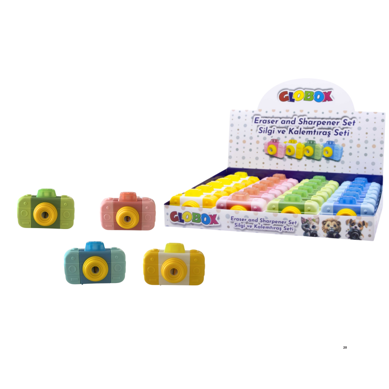 GLOBOX 3783 SİLGİ VE KALEMTIRAŞ SETİ 24'LÜ (FOTOĞRAF MAKİNESİ)