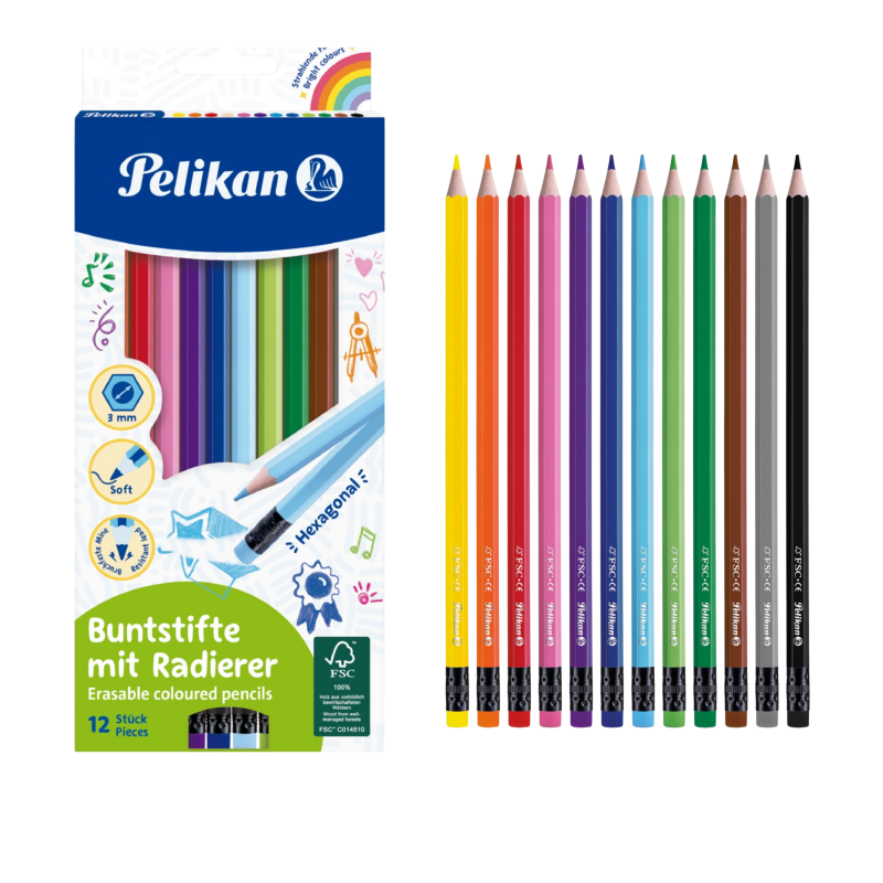 PELİKAN 12 RENK SİLGİLİ KURU BOYA 10'LU PKT.